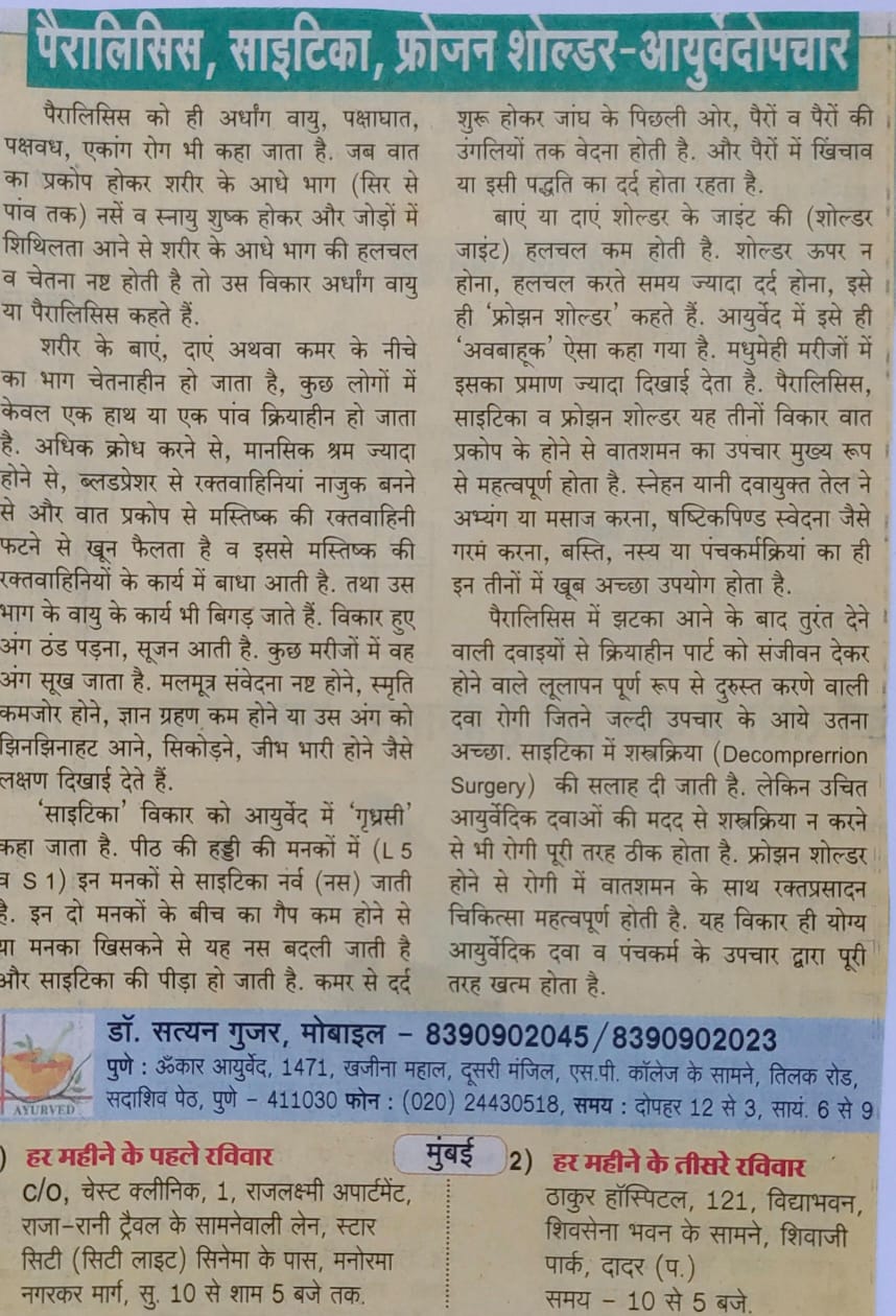 Skin Disorder Treatment Dr. Satyan Gujar 01 June 2016 Treatments “Kushta” is a wide term used for various disorders. Skin...